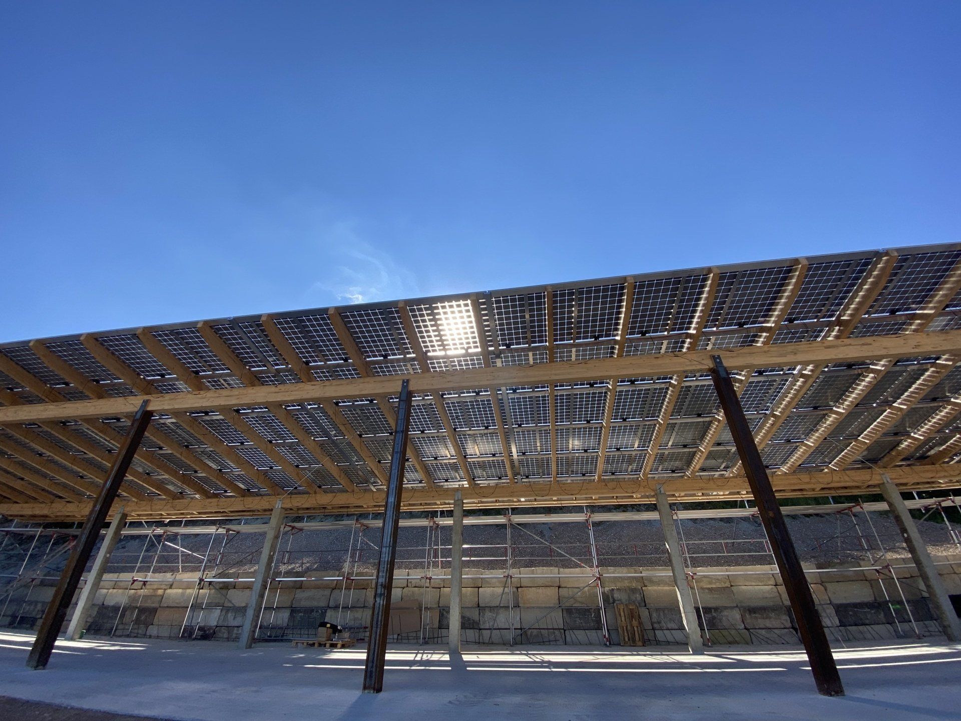 Photovoltaik-Carport aus Holz mit integrierter Ladestation